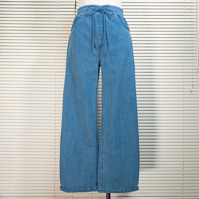 伸縮性のある厚手のデニムのパンツです。ウエストを紐で絞るタイプで締め付けない着心地のいいボトムです。 サイドのタックが足長にキレイシルエットです。 ボリューム感がありカジュアルな着こなしを楽しんで頂けます。 サイズ ウエスト70cm パンツ丈95cm パンツの幅 21cm 素材 綿95% ポリエステル3% ポリウレタン2%