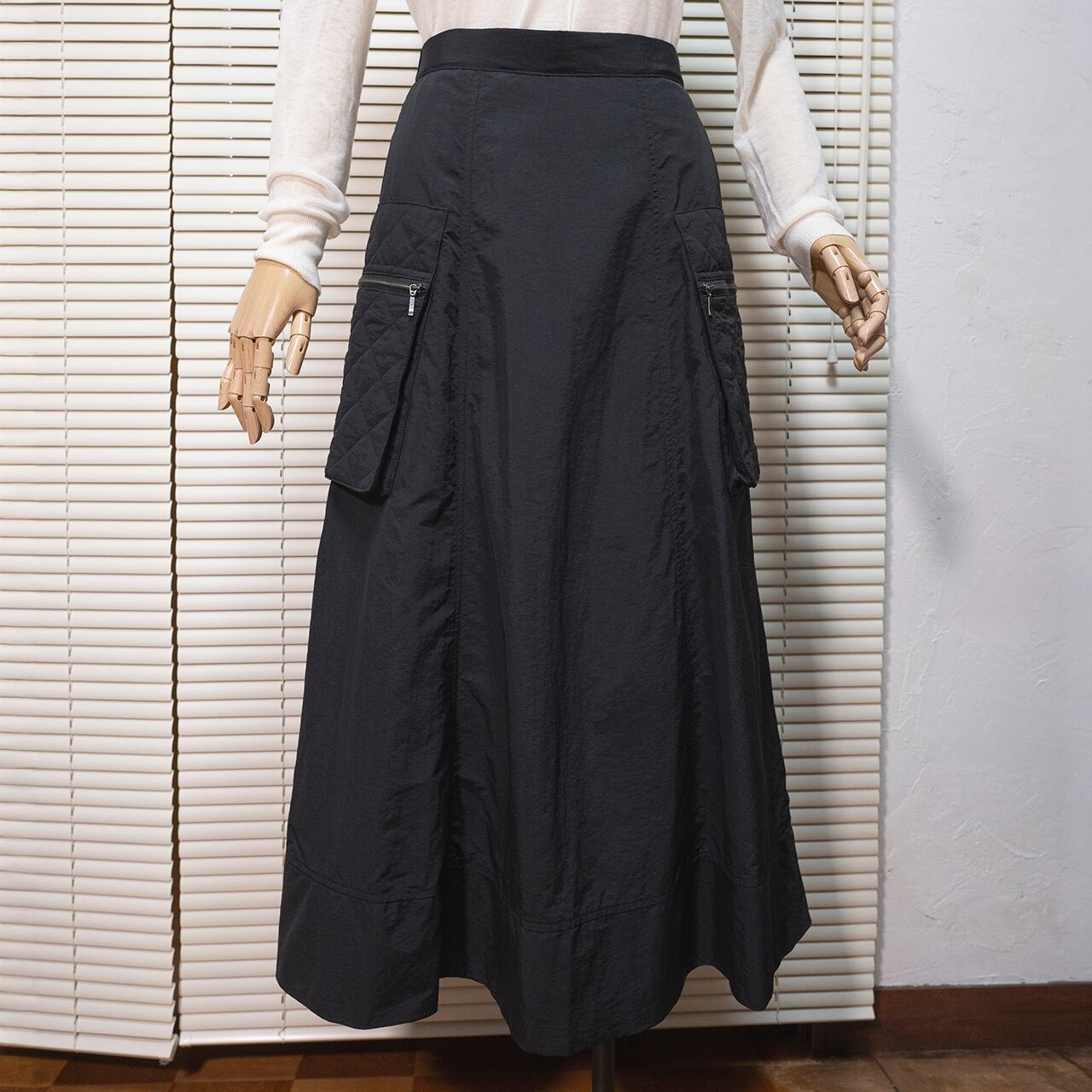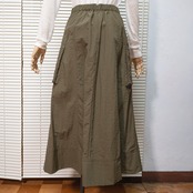 立体的なパッチワークの貼りポケットがポイントの6枚ハギのフレアスカートです。