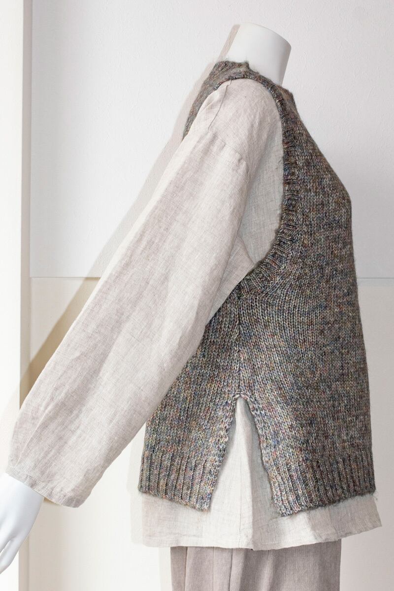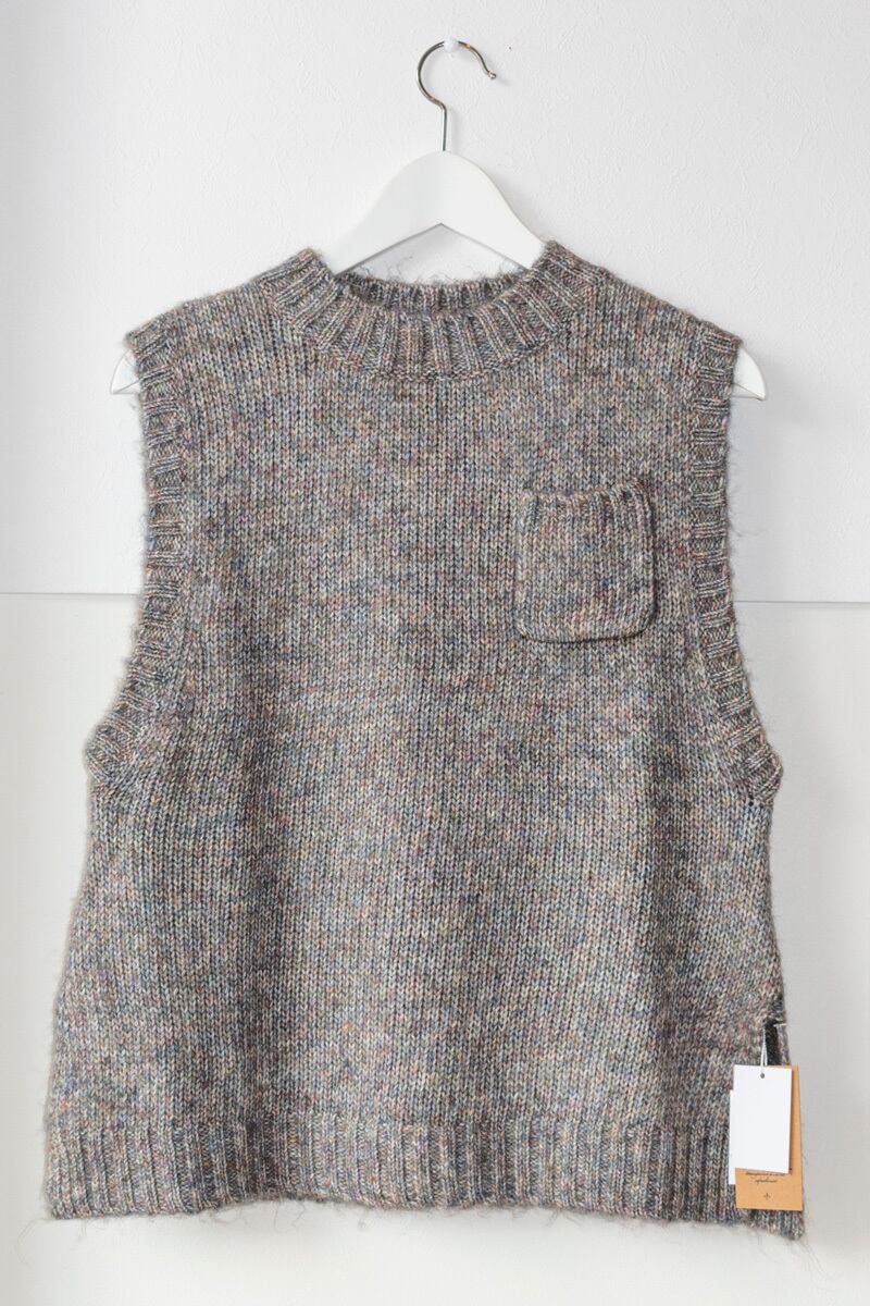 ミックス糸のコットンウールのニットベストです。シンプルな定番アイテムで胸のポケットがポイントです。トラディショナルな印象なのでシャツなどに合わせて正統派に着こなしたり、ワンピースに合わせてカジュアルなに着崩したり…、いろいろ着まわせる一枚です。