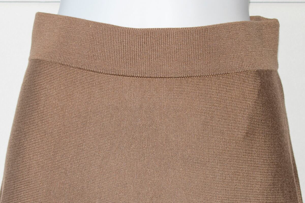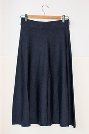 薄くてしなやかなニット素材のフレアスカートです。ひざ下から少し長めの丈の大人っぽい感じのシンプルなデザインのボトムです。ザックリしたニットにあわせたり、シンプルなプルオーバーに合わせたり…。落ち着いたキレイめなコーディネートがお勧めです。